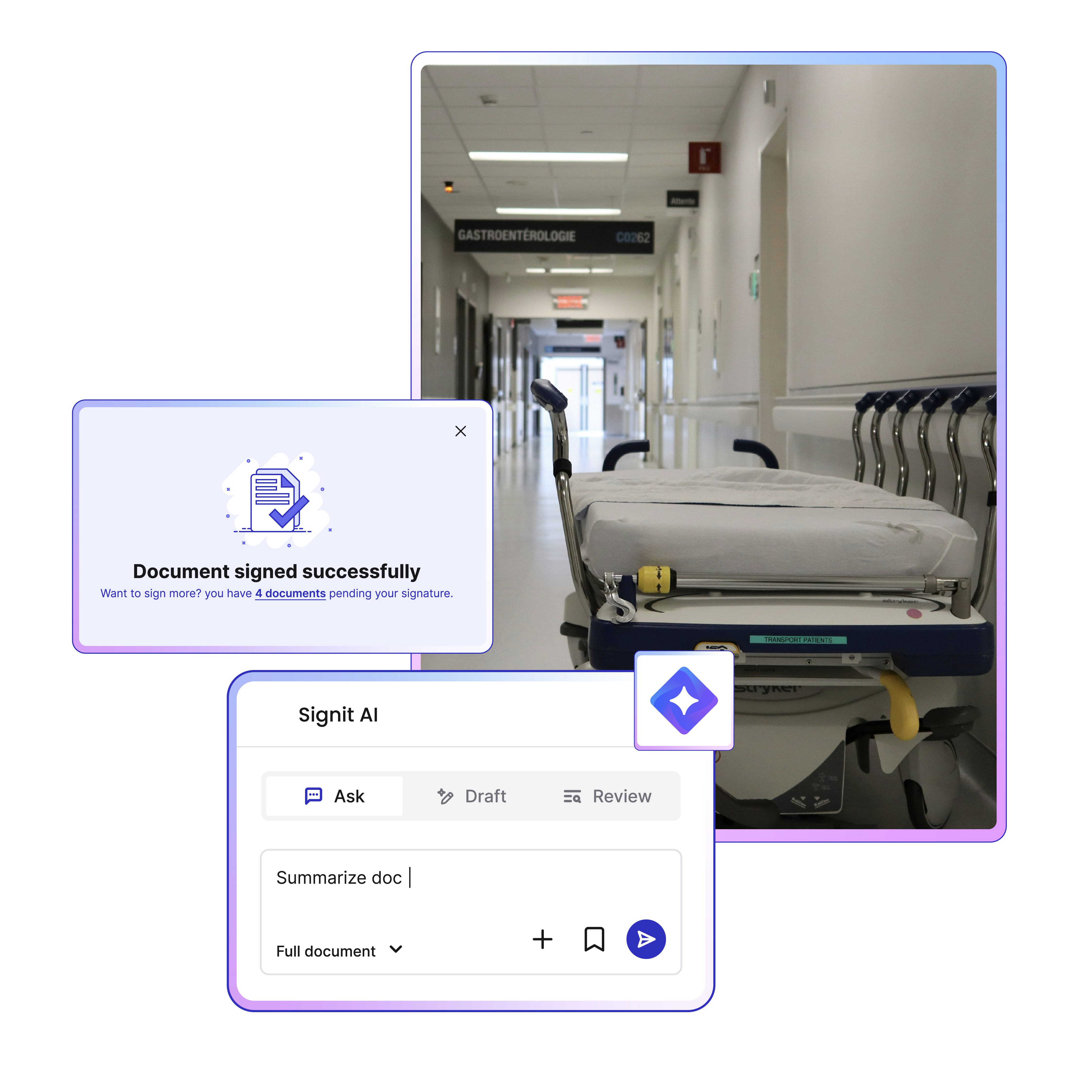 مكّن المرضى والأطباء والشركاء من التوقيع الإلكتروني الموثوق — توقيعات قانونية موثّقة ومختومة بالوقت، تُخزّن بأمان داخل مراكز البيانات في المملكة.